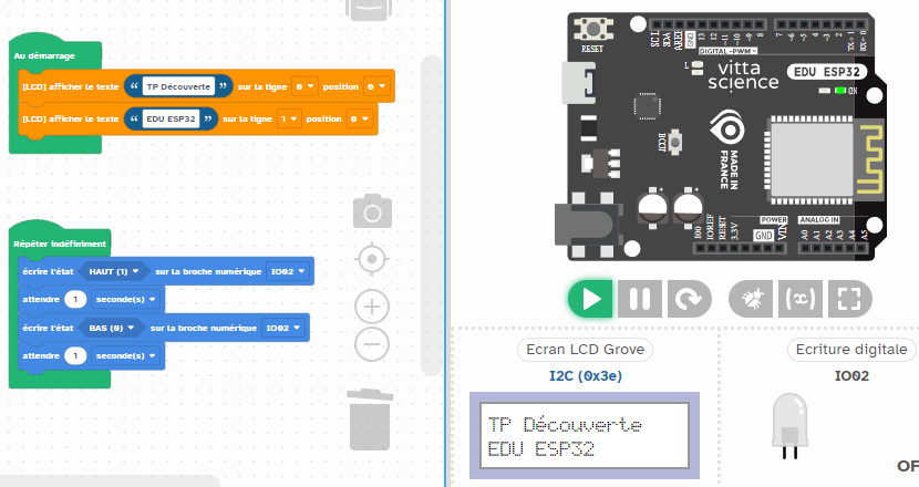 Elle peut se programmer en mode block ou en MicroPython depuis l'interface de programmation Vittascience en ligne