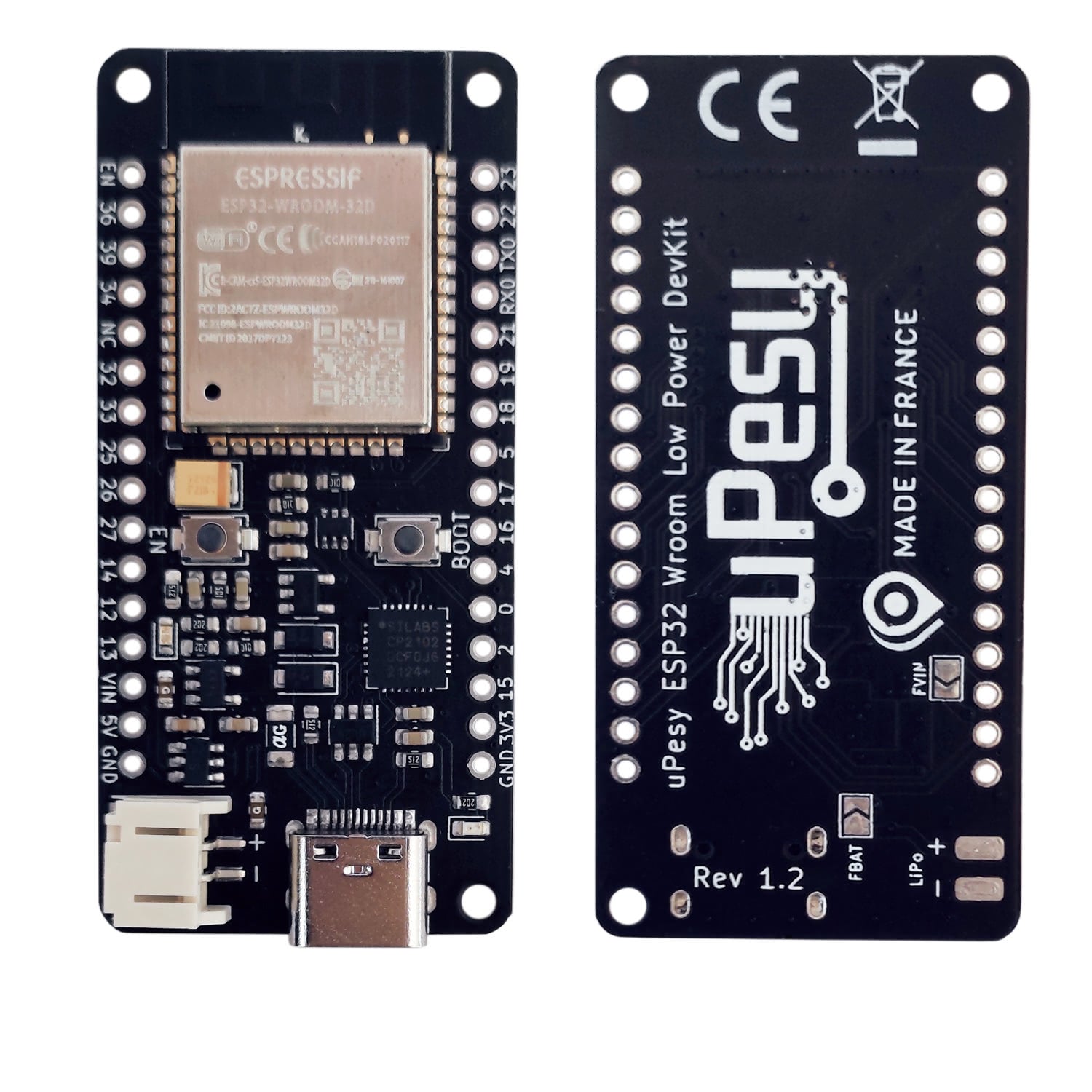 - 📌 Fiable : Carte de haute qualité conçue en France 🇫🇷. Chaque carte uPesy ESP32 Wroom Low Power DevKit est testée individuellement pour s’assurer de son bon fonctionnement ! MicroPython est déjà présent sur la carte avec un script qui fait clignoter la LED.